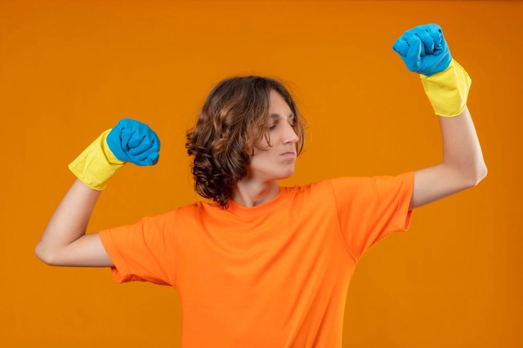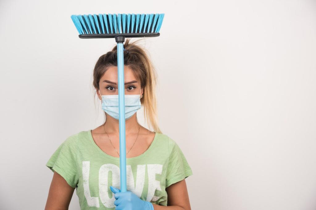 Stauben Sie die Oberfläche ab, entfernen Sie alte Rückstände mit mildem, alkoholfreiem Reiniger. Wählen Sie eine unauffällige Ecke als Teststelle. So erkennen Sie Reaktion, Saugverhalten und Farbveränderung frühzeitig. Teilen Sie Ihre besten Reinigungshelfer mit uns.